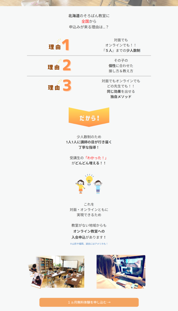 少人数制へのこだわりと、オンライン教室の品質の高さが、伝わりますでしょうか?